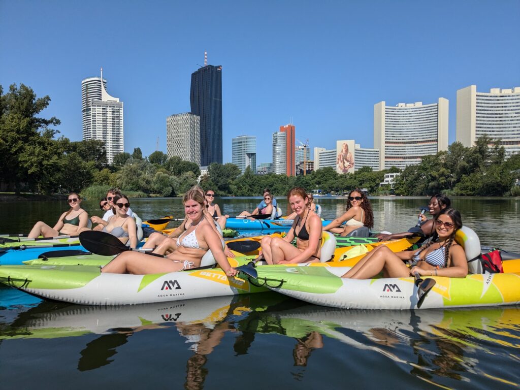 We’ll be investigating the most relaxing part of Vienna, the Alte Donau; a lakeside village which was cut off from the main Danube channel in 1870. This is where nocturnal beavers now roam in an old side arm of the grand river. We’ll see how Vienna maintains its long-established reputation as a center for diplomacy, politics and international relations as we paddle past the United Nations, along with several of the city’s other most important contemporary buildings, which together are forging ‘new’ Vienna’s emerging skyline. This is later contrasted with cute lakeside huts which adorn the water’s edge to give vibrant bursts of colour to the lakeshore. You’ll get loads of tips from us on things to do during your stay, all while making new international friends, getting some sunshine, and being active in the great outdoors!